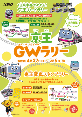 京王電鉄株式会社(本社:東京都多摩市、社長:紅村 康)では、4月27日(土)から5月6日(月・祝)までの大型連休の期間中、京王線・井の頭線の各駅を周遊しながら、子どもから大人まで楽しめる「京王電車スタンプラリー ~GW特別編~」と「一日乗車券でめぐる!京王電車カードラリー」を実施します。