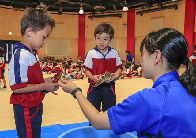 (特別授業時間:レクチャーとウミガメの子ガメへのタッチを合わせ約1時間)