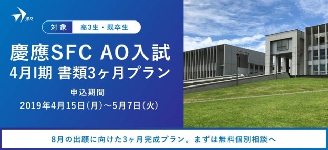 AO入試・推薦入試・小論文対策の個別指導を手がける洋々(本社所在地:東京都渋谷区)は、慶應義塾大学総合政策学部・環境情報学部(慶應SFC)の2020年度AO入試4月入学I期の出願書類を3ヶ月で完成させるためのプランの受講生の募集を開始しました。