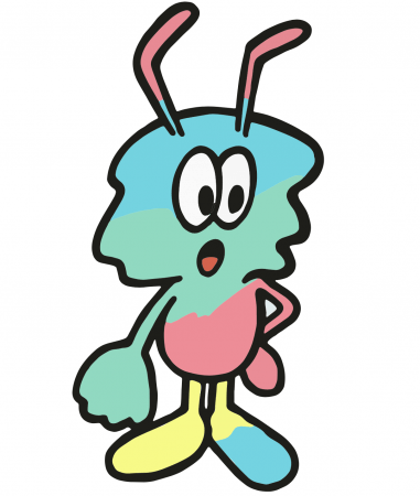 好奇心旺盛で、大きな目はいろいろなものを発見していき、大きな手は様々なモノを作り出したり、ハグするときに包み込んでくれたりする。触覚のようにピンと立った耳は、新しいことを取り入れるのに敏感で、楽しいことやセンスをどんどん見つけるアンテナ。い ろんなものを吸収して、性格や色が変わっていく。