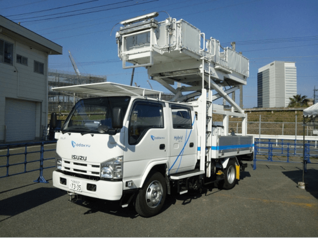 架線の保守・点検作業で活躍する環境にやさしいハイブリット車の実演を間近にご覧いただき、一部の機器を操作いただけます。