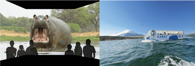 乗車前の期待感・ワクワク感を高めていただくために、新たにシアタールームを設け、「最近、山中湖でいるはずのないカバの目撃情報が多数寄せられている。その正体は一体何なのか!?」という設定の大迫力の3面シアターによるプレショー映像を、バスツアーの冒頭で観賞していただきます。