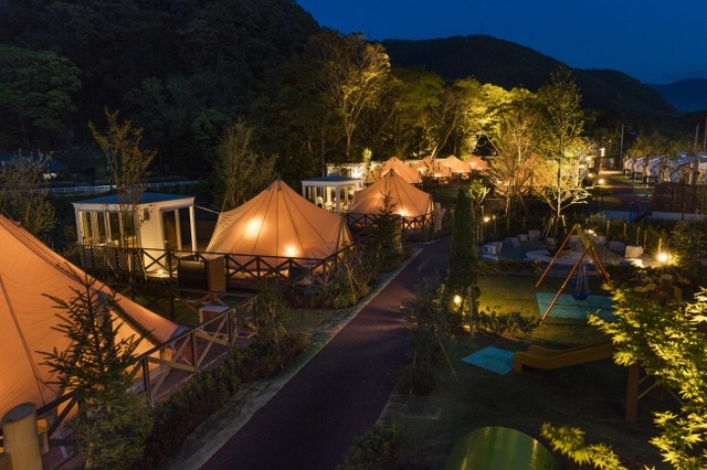 「Ufufu Village」は伊豆月ヶ瀬の豊かな自然の中で過ごす、自家源泉100%温泉付きのグランピング施設です。