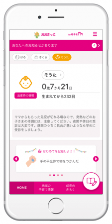 また、離れた地域に住む祖父母など家族との共有機能や、町が配信する地域の情報をお知らせするなど、新たなコミュニケーションツールとしても活用が期待でき、核家族化が進む若い世代にも安心して出産・子育てできる環境づくりの一助となることを願っています。