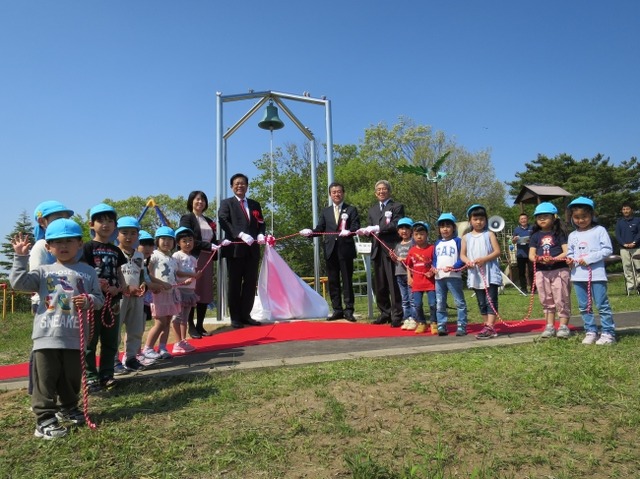 式典では、寺澤町長からブラザーの継続的な支援への感謝が述べられたほか、小池会長は、震災から9年目を迎え、これからは心の復興が大切になっていく。令和の始まりという節目の年にきずな公園に希望の鐘が加わったことを嬉しく思うとともに、この鐘が七ヶ浜町とブラザーとの新たな絆になることを期待すると語った。