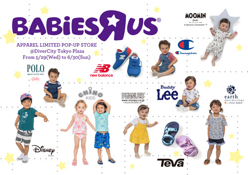 玩具とベビー用品の国内最大級の総合専門店である日本トイザらス株式会社(本社:神奈川県川崎市、以下、日本トイザらス)は、2019年5月29日(水)から6月30日(日)までの期間限定で、「ダイバーシティ東京 プラザ」2階「DiverCity+(ダイバーシティプラス)」(東京都江東区)に、ベビー総合専門店「ベビーザらス」のアパレル限定ポップアップストアを、東京都内で初めてオープンいたします。