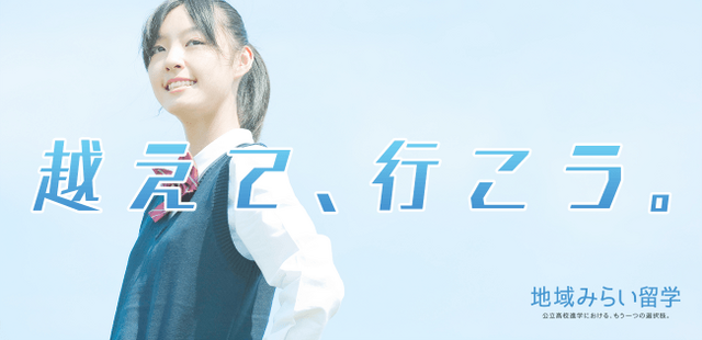 2017年から、日本の教育・人材育成のトップランナー3名(以下)が推進する、高校生のための地域留学プログラム。希望する学生は、高校進学段階において親元を離れ、それまで居住していた都道府県外の公立高校へ進学。地域環境に恵まれた3年間の高校生活を送ることができます。詳細は、公式サイトをご覧ください。