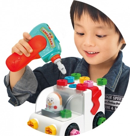 「アンパンマン くみたてDIYシリーズ」は、ねじやパーツの接合部分が共通の形をしているため、「アンパンマンごう」や「だだんだん」などと組み合わせて、自分だけのオリジナルのメカを作ることができます。完成形は無限大、試行錯誤しながら組み立て遊びをすることで、子どもの自由な発想を大きく広げます。