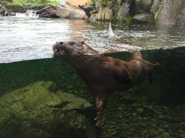 アクアマリンふくしまでは、2010年からユーラシアカワウソを展示しています。今回の出産で、国内で最多の7回の繁殖に成功しています。「カワウソのふち」は2015年に新しくつくった施設です。生息環境の再現と動物本来の行動を引き出した点において、「エンリッチメント大賞2018」の大賞を受賞しました。