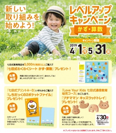 (1)七田式教育商品を5,000円(税別)以上ご購入で『七田式わくわくシート かず・算数』がプレゼント!