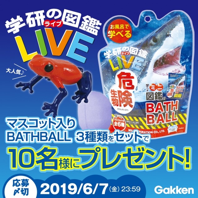 株式会社 学研ホールディングス(東京・品川/代表取締役社長:宮原博昭)のグループ会社、株式会社 学研プラス(東京・品川/代表取締役社長:碇 秀行)は、「学研の図鑑 LIVE」バスボール「危険生物」発売記念プレゼントキャンペーンをTwitter、Instagramで開催中です。