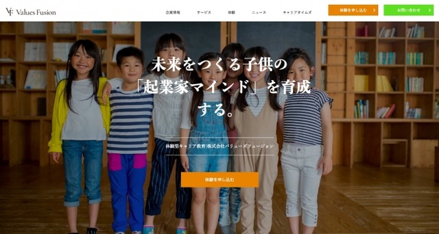 バリューズフュージョンは、体験型キャリア教育カンパニーとして、子供のキャリア教育を通して、企業のブランド価値を向上させるサービスを提供する企業です。自社の事業、ブランドを踏まえた独自の職業体験を子供たちへ提供したいと考える企業スポンサーと、幼少期からのキャリア形成の必要性をお考えの保護者を結ぶ機会を提供します。