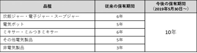 タイガー魔法瓶株式会社(社長:菊池嘉聡、本社:大阪府門真市)は、お客様満足度の向上を目的として、補修用性能部品(アフター部品)の保有期間を2019年5月30日より、全商品で10年間に延長いたします。