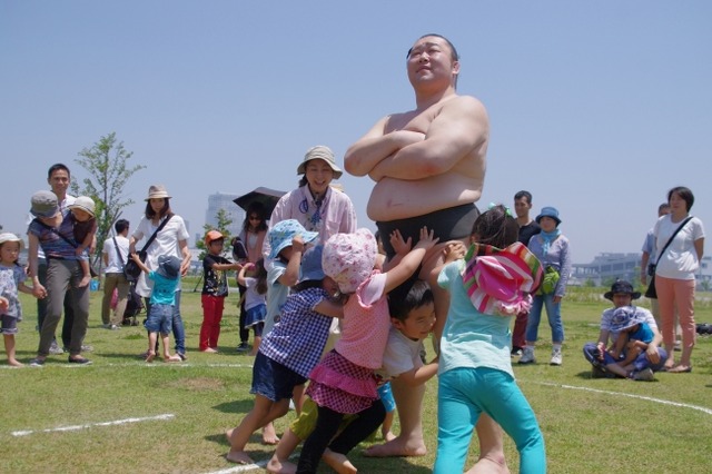 江東区にある相撲部屋「山響部屋」にご協力いただき、普段なかなか触れ合うことのできない”お相撲さん”に公園に来ていただきます。地元で活躍する、強くてたくましいお相撲さんと、相撲をとったり記念撮影するチャンス!
