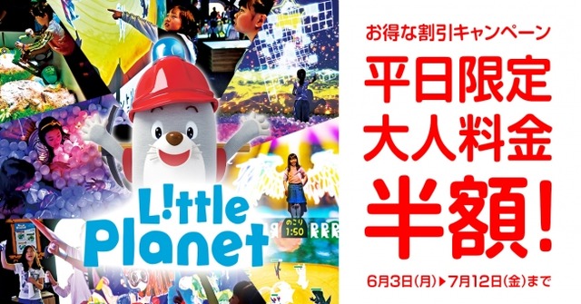 名称:「猛暑日や雨の日もリトプラで楽しもう!ママパパ応援☆平日限定おとな半額キャンペーン」