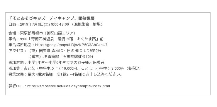 企画したのは『親子で今やりたい、とっておきのあそび』の検索・予約サービスを提供している「SOTOASOBI KIDS(そとあそびキッズ)」。