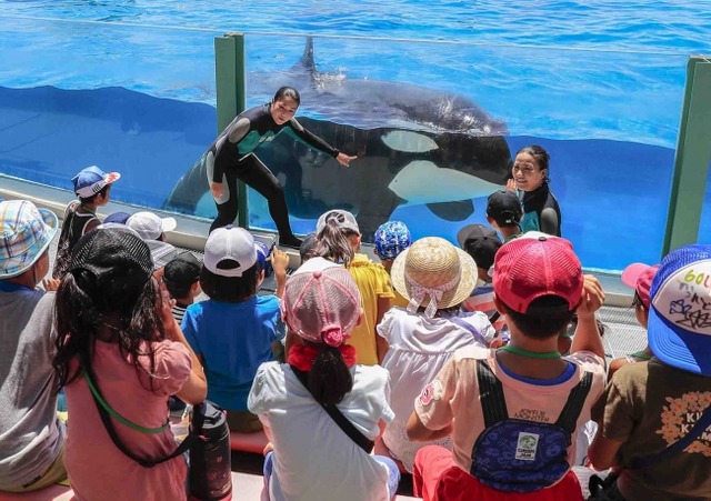 本プログラムでは、イルカやシャチなどの海獣類や魚類とのふれあい体験や餌やり体験、観察をとおして水の生き物について楽しく学ぶことができます。さらに、現役のトレーナーが講師として解説を行うコーナーも設けています。