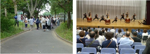 越谷キャンパスでは、学生による学内見学ツアーを今年初めて実施しましたが、100名を超える応募がありました。30名ほどの4チームに分かれ、学生が説明をしながら様々な場所を案内することで、保護者の方々も学生視点でキャンパスを知ることができ、新たな発見があったとの声がありました。また、毎年好評の学生団体によるクラブ・サークル活動の発表では、吹奏楽部等の演奏やダンス、大道芸の発表などがおこなわれ、盛り上がりを見せました。