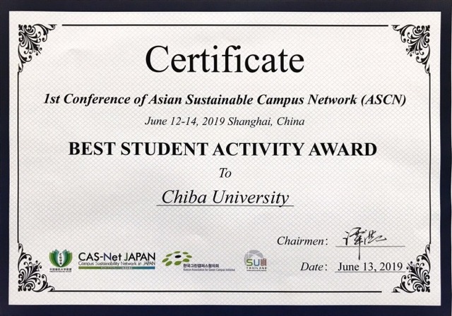 5大学6団体の学生発表があり、審査の結果、千葉大学環境ISO学生委員会が「最優秀学生活動賞:Best Student Activity Award」を受賞しました。