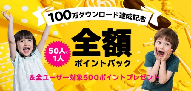 100万ダウンロードを記念し、キャンペーン期間中「smarby」でお買い物いただいた方を対象に50人に1人が「実質無料」でお買い物ができる全額ポイントバックキャンペーンを実施します。同時に、全ユーザーへ500ポイント(1ポイント=1円)プレゼントを含む、様々なキャンペーンも行います。キャンペーン期間中は、通常、新規会員登録時の300ポイントプレゼントに加えて、計800ポイントがプレゼント。