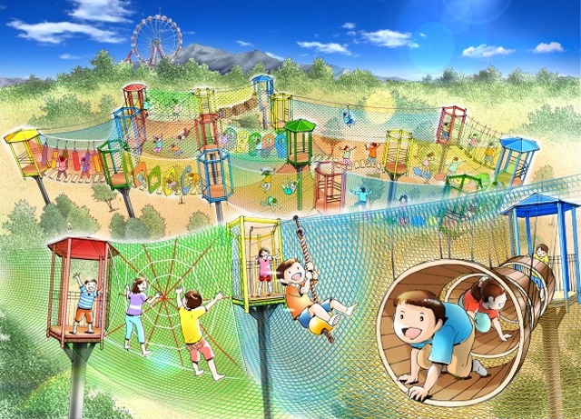 富士急行株式会社(山梨県富士吉田市、取締役社長:堀内光一郎)では、アウトドア複合リゾート「さがみ湖リゾート プレジャーフォレスト」(神奈川県相模原市)の「パディントン タウン」に2019年7月13日(土)、空中アスレチック「ハッスル スパイダー」を開業いたします。