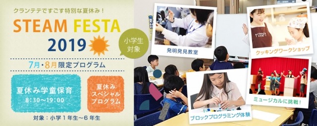株式会社 学研ホールディングス(東京・品川/代表取締役社長:宮原博昭)のグループ会社、株式会社学研塾ホールディングス(東京・品川/代表取締役社長:福住一彦)と株式会社市進ホールディングス(千葉・市川/代表取締役社長:下屋俊裕)との共同出資によって設立された株式会社GIビレッジ(東京・港区/代表取締役社長:秋谷俊之)が運営するプリスクール&アフタースクール「クランテテ三田」では、「最後までやり通すこと」「仲間と協働すること」「多様で豊かな実体験をすること」に主眼をおいたSTEAM教育プログラム『STEAM FESTA 2019』を開催いたします。