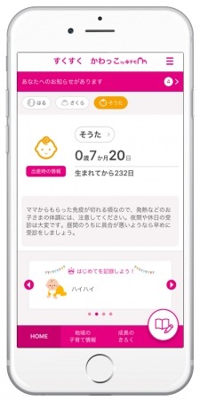 ◆地域密着型の子育てアプリで妊娠・出産・育児をしっかりサポート! 川辺町に採用された『すくすく かわっこ』は、スマートフォン・タブレット端末・PCに対応したサービスで、妊産婦と子どもの健康データの記録・管理や予防接種のスケジュール管理、出産・育児に関するアドバイスの提供など、育児や仕事に忙しい母親や父親を助けてくれる便利な機能が充実しています。