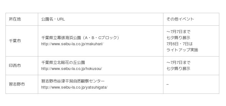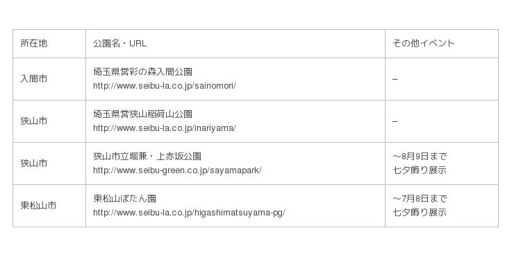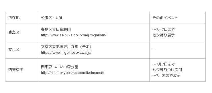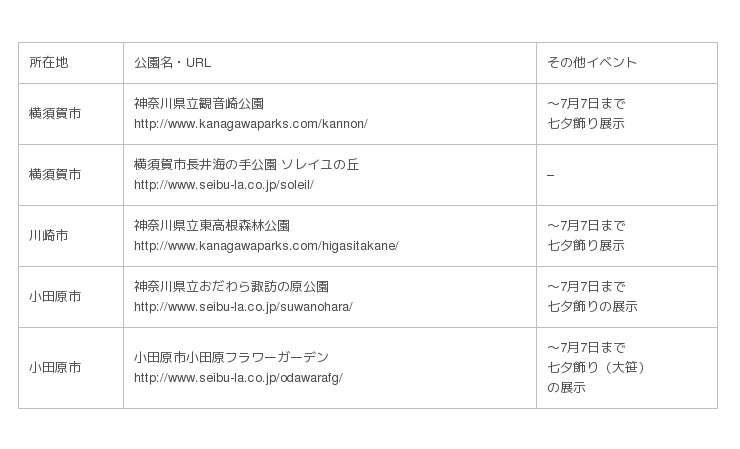 7月7日の『七夕』に合わせ、西武グループ企業として都市公園の管理運営などを行う西武造園グループは一般社団法人七夕協会と連携し、『七夕ゆめさくぶん』×『公園』コラボレーション企画を2019年6月29日(土)~7月12日(金)の期間で実施します。
