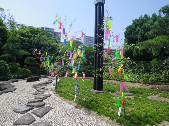 公園内にある日本庭園「見浜園」入口に大笹を展示し、来園者や近隣施設の園児による短冊や飾りなどを装飾します。また、スマートフォンARを活用した公園オリジナルのフォトフレームの記念撮影スポットも登場します。7月6日(土)と7日(日)の二日間は、七夕飾りのライトアップを開催!七夕の夜にきらきらと輝く大笹などをご覧いただけます。
