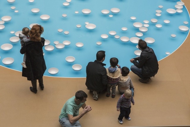 セレスト・ブルシエ=ムジュノ《クリナメン v.1》2013年 ポリ塩化ビニル製シート、ポンプ、加熱装置、陶磁器Installation view: National Gallery of Victoria, Melbourne (C) Céleste Boursier-Mougenot Photo: NGV Photographic Services Departmen