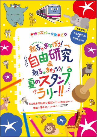 京王電鉄株式会社(本社:東京都多摩市、社長:紅村 康)では、7月20日(土)から9月1日(日)まで、京王線多摩動物公園駅エリア「キッズパークたまどう」にある「京王あそびの森 HUGHUG 〈ハグハグ〉」「京王れーるランド」「多摩動物公園」の3施設で、「親子でまなぼう!自由研究」と「親子でまわろう!夏のスタンプラリー」を開催します。