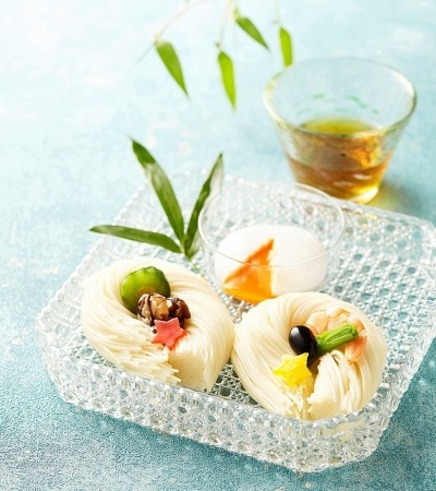 「七夕」は五節句のひとつで、年に1度、織姫と彦星が天の川で出会うことができると伝えられるロマンティックな日。また、天の川に見たてたそうめんを食べて、無病息災を願う習慣が古くからあり、「七夕そうめん」は、近年定番化しつつあります。