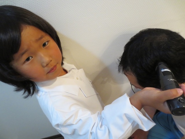 「スタッフ体験」では、お子様がリーブ21のスタッフとなり、頭皮撮影用スコープを用いて、保護者様の髪や頭皮の状態をチェックし、その健康状態について、アドバイスを行います。