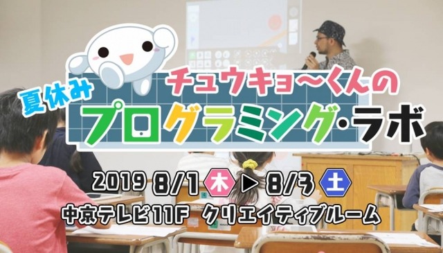 中京テレビ放送株式会社(本社:愛知県名古屋市、社長:丸山公夫 以下「中京テレビ」)は、プログラミングワークショップ「チュウキョ~くんの夏休みプログラミング・ラボ2019」を8月に開催いたします。2020年度からの小学校のプログラミング教育が必修化されることを見据え、子供たちと一緒にゲームなどの創作活動を通して、自発的な創造性を引き出しながら、論理的な思考を学ぶことを目的とした取り組みとなります。