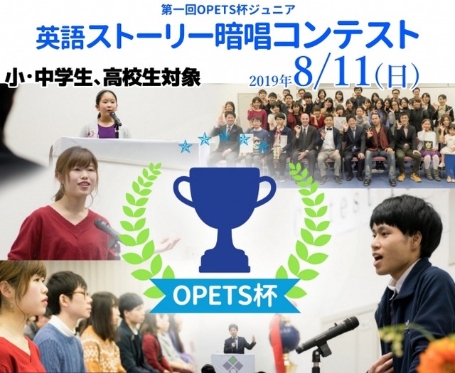 年末恒例、TVにも取り上げられ全国的に注目されている、『年齢無制限!英語スピーチ暗唱コンテストOPETS杯』の姉妹コンテストとなる『OPETS杯ジュニア』が小中高生対象に、この8月初めて開催されます。