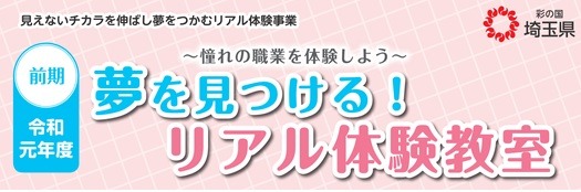 「夢を見つける!リアル体験教室」は、埼玉県在住の小学4年生から6年生までを対象に、憧れの職業を体験する『学びと体験の教室』です。様々な分野で活躍する、埼玉ゆかりの企業のプロフェッショナルが講師となり、直接学べる体験教室を通じて夢や目標にチャレンジします。