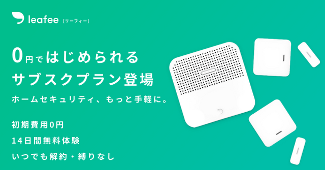 アプリとスマート防犯センサーを使ったホームセキュリティ「リーフィー」は、初期費用0円、契約期間の縛り無しで「気軽にはじめられる」サブスク型のプランの提供を本日から開始します。