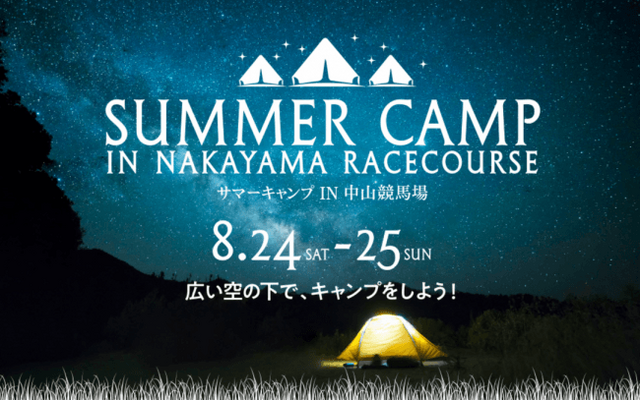日本中央競馬会中山競馬場(船橋市)は、JRA史上初!?となる1泊2日のサマーキャンプを実施します。テントやキャンプ用具、食材も一式そろっているので手ぶらで参加が出来ます。その他にもたけだバーベキューによるキャンプ講座や競馬場の大型ビジョンを利用したゲーム体験など、普段では味わえないイベントが盛りだくさん。この夏、特別な1日を親子で体験しよう!
