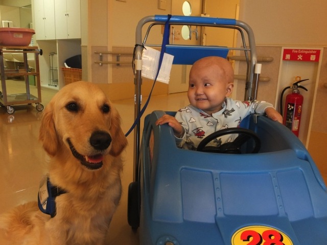 病院に常勤して医療チームの一員として働けるように、専門的なトレーニングを受けた犬です。 ハンドラーとペアになって活動し、単なる患者との触れ合いにとどまらず、小児がんや重い病気の治療にも関わっています。