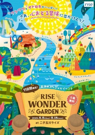 東急田園都市線・大井町線二子玉川駅直結の複合施設「二子玉川ライズ」は、2019年8月8日(木)~18日(日)まで期間限定で、家族で楽しむことができるテーマパーク型の夏休みイベント「RISE WONDER GARDEN」を開催いたします。この度、コンテンツ内容が決定したことをお知らせいたします。