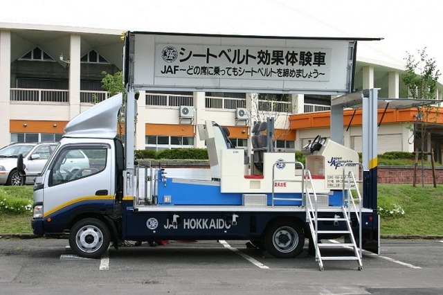 一般社団法人 日本自動車連盟(JAF)札幌支部(支部長 横井 隆)は、7月28日(日)に、石狩市総合保健福祉センターりんくる(石狩市花川北6条1丁目)にて開催される「石狩防災フェスタ2019」(主催:一般財団法人 石狩市防災まちづくり協会)にシートベルト効果体験車を出展いたします。