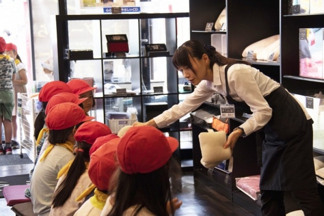 生徒からは「まくらはどうやって作っているの?」「まくらを作る仕事をして嬉しかったことは?」など、枕に関する質問や、仕事内容についての質問がたくさん寄せられ、熱心にメモをとっている姿が印象的でした。実際にオーダーメイド枕の生地や中材料を触り比べ、「そういえば自分よりお父さんのまくらの方が硬い!」と、素直に驚く生徒の様子に、まくらぼスタッフにとってもオーダーメイド枕と睡眠の大切さを伝えることの重要性を改めて実感する機会となりました。