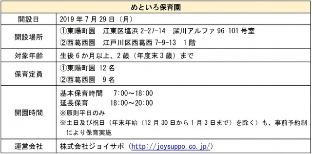 東京地下鉄株式会社(本社:東京都台東区、代表取締役社長:山村 明義、以下「東京メトロ」)は、東京都江東区と江戸川区に、東京メトログループ社員向け保育園『めといろ保育園』(以下、「本施設」)を2019年7月29日(月)に開設いたします。
