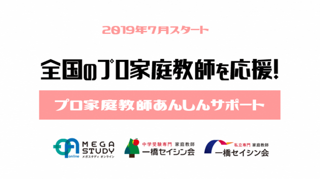 「家庭教師メガスタディオンライン」「家庭教師の一橋セイシン会」を運営する株式会社バンザン(東京都新宿区、代表取締役社長 山田博史)は、一般社団法人プロフェッショナル&パラレルキャリア・フリーランス協会 (東京都中央区、代表理事 平田麻莉、以下「フリーランス協会」)と提携し、在籍するプロ家庭教師に「損害賠償保険」や「所得補償」、さらには各種優待が利用できる福利厚生サービスなどの提供する『プロ家庭教師あんしんサポート』を開始しました。