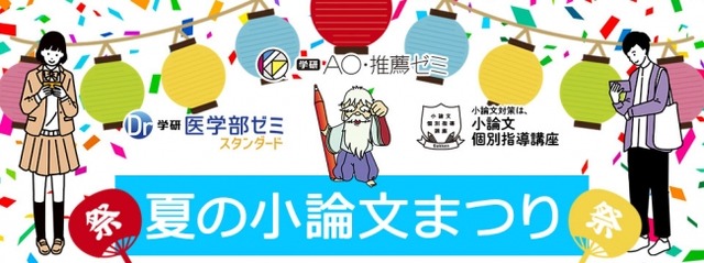 株式会社 学研ホールディングス(東京・品川/代表取締役社長:宮原博昭)のグループ会社、株式会社 学研プラス(東京・品川/代表取締役社長:碇 秀行)は、AO入試や推薦入試、一般入試で小論文を課されるすべての受験生を応援するキャンペーン「学研 夏の小論文まつり」を開催しています。