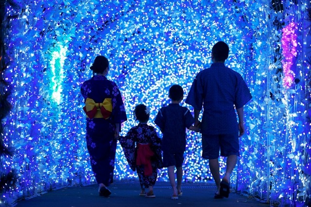 今夏新登場!キラキラ輝くイルミネーションで作られた巨大迷路。光のトンネルや様々なオブジェも飾られ写真スポットとしてもおすすめです。