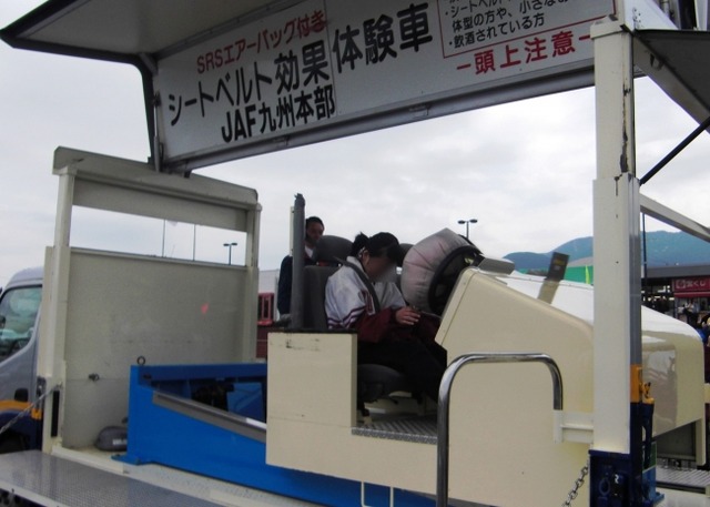JAFブースでは、子どもを対象とした交通安全クイズに答えてもらえる「子ども安全免許証」の発行と、時速5kmで衝突した際の衝撃体験を通じてシートベルトの重要性が学べる「シートベルトコンビンサー」の乗車体験を行います。