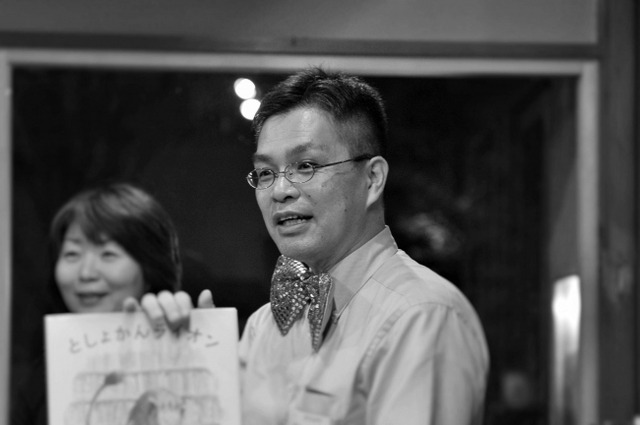 「おとなの絵本プロジェクト」主宰。2014年から大人を対象とした絵本のよみきかせイベントを行い、これまでに約300回、約5000人が参加。「絵本を読んだ大人が元気でニコニコすれば、きっと子どもにもよい影響を与える」という信条のもと、活動を続けている。キラキラの大きな蝶ネクタイがトレードマーク。