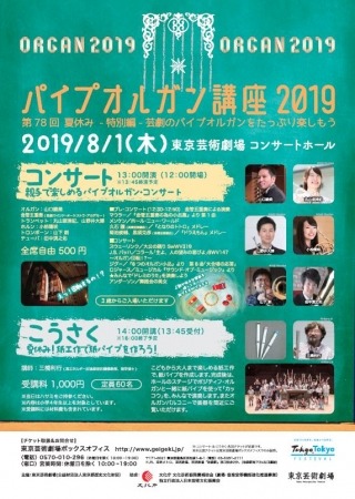 夏は東京芸術劇場でパイプオルガンをたっぷり楽しもう! 親子で楽しめる約50分間の「コンサート」と、紙でパイプを作れる「こうさく」の講座です。