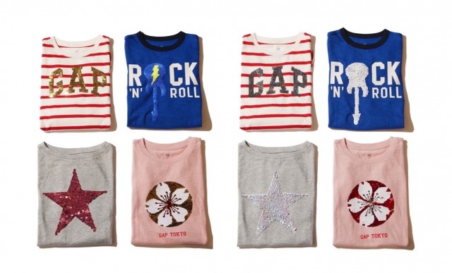 「FLIPPY(フリッピー) COLLECTION」は、2015年の発売当初より、その遊び心溢れるデザインから、多くの子供たちに大人気のGapKidsが展開するコレクションです。本コレクションは、子ども達のオプティミスティックでハッピーな瞬間からインスピレーションを得て誕生しました。アイテムにはすべて、表裏でデザインが異なるスパンコールで描かれたデザインが描かれており、そのスパンコールを上下に撫でると、カラーやグラフィックのデザインが変わるユニークで遊び心あるアイテムとなっています。